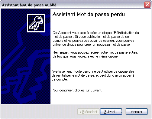 disquette " Réinitialisation du mot de passe ". Si vous oubliez le