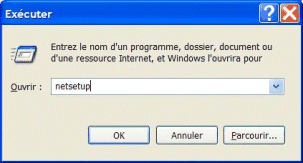 Vous pouvez aussi saisir la commande netsetup dans la boîte de dialogue Exécuter du menu Démarrer.