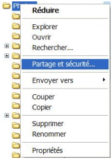 Depuis le Poste de travail ou l'Explorateur Windows, cliquez du bouton droit sur le dossier à partager. Attention, tout le contenu du