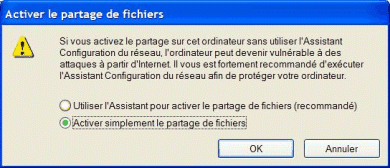 Choisissez ensuite l'option Activer simplement le partage de fichiers. Puis cliquez sur le bouton OK.