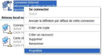 Cliquez du bouton droit sur la connexion à partager, puis sur Propriétés.