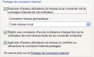 Autoriser d'autres utilisateurs du réseau à se connecter via la connexion Internet de cet ordinateur.