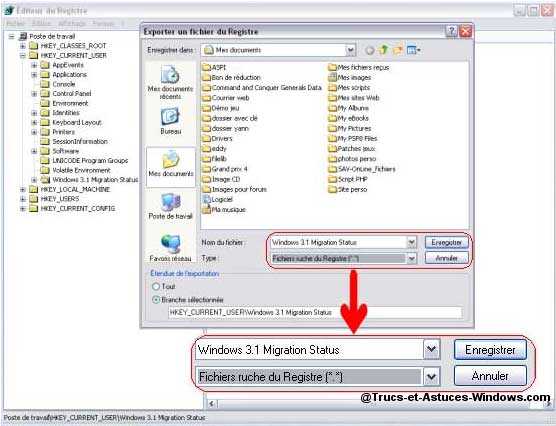 Sauvegarder une ruche Cliquez sur une clef avec le bouton droit de la souris et selectionnez " Exporter ". Choisissez " Fichiers ruche du registre " dans la liste " Type " et nommez votre fichier. Pour revenir en arrière ouvrez " Fichier > Importer " et selectionnez votre sauvegarde.