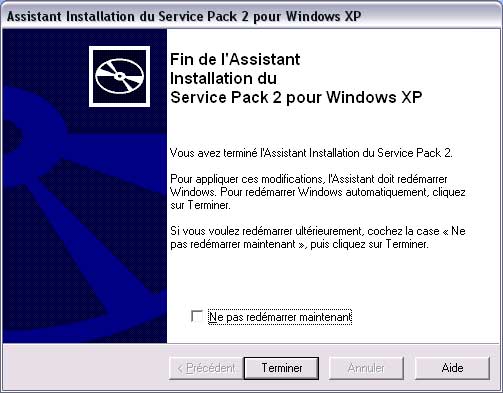 Voici la dernière fenêtre que vous verez avant de redémarrer. Cliquez sur Terminer.